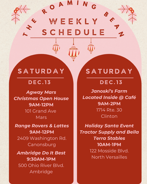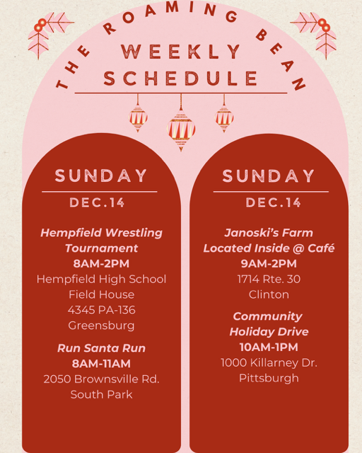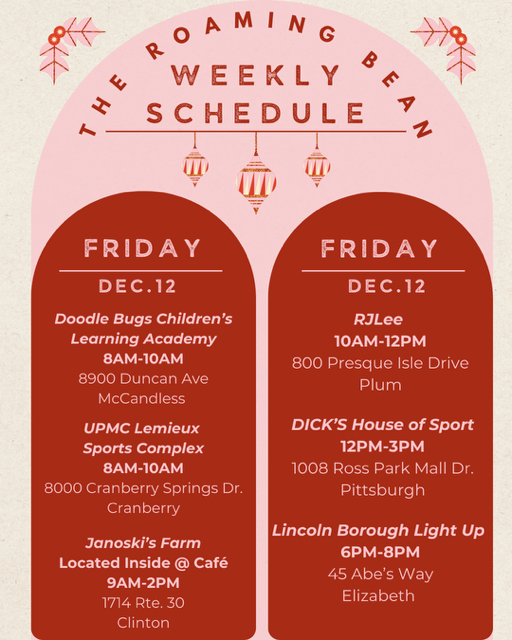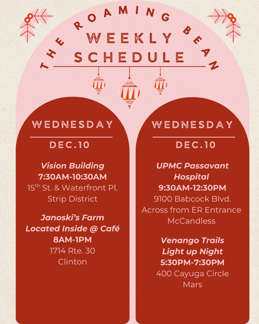 Weekly ScheduleThe Roaming BeanThe Roaming BeanThe Roaming BeanThe Roaming BeanThe Roaming BeanThe Roaming BeanThe Roaming BeanThe Roaming Bean