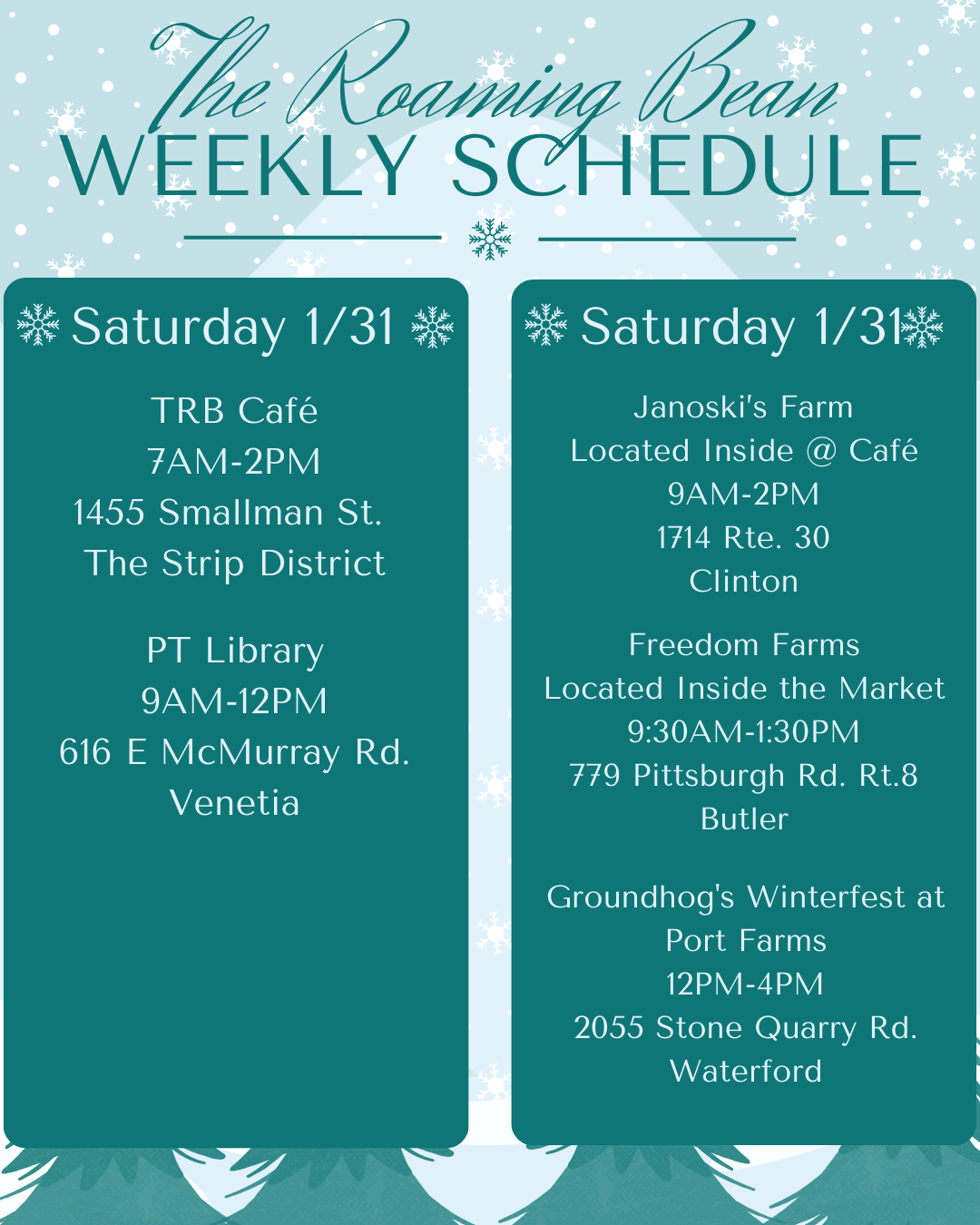 Weekly ScheduleThe Roaming BeanThe Roaming BeanThe Roaming BeanThe Roaming BeanThe Roaming BeanThe Roaming BeanThe Roaming BeanThe Roaming BeanThe Roaming Bean